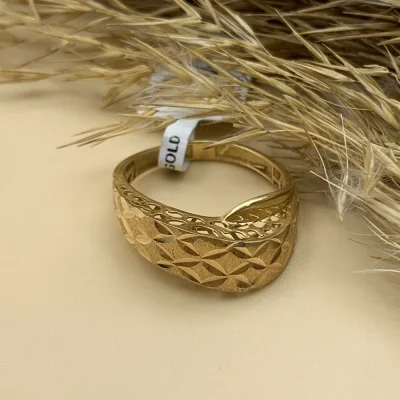 انگشتر الگوی طلایی، با طراحی منحصربه‌فرد و بافت هندسی‌اش، نمادی از هنر و ظرافت است. این حلقه طلایی با نقش‌های