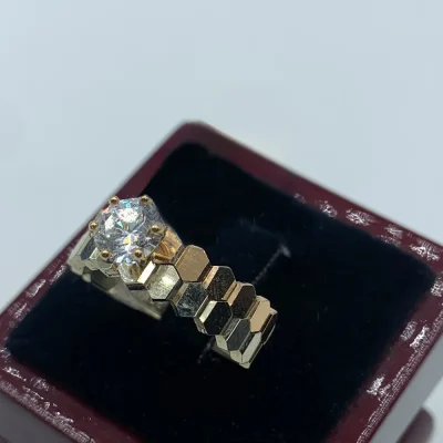 انگشتر شکوفه زر با طراحی هندسی منحصربه‌فرد و نگین درخشان، نمادی از شکوفایی و تجمل مدرن است. این اثر که