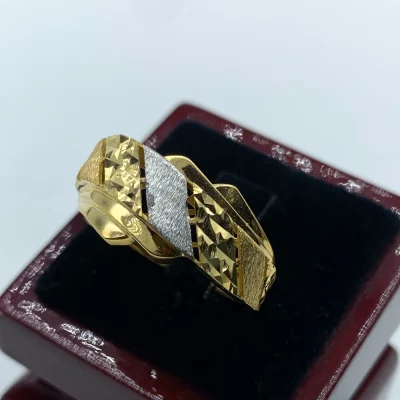 انگشتر “پارسه” با طراحی طلایی و برش‌های مدرن، نمادی از اصالت و شیکیه. این حلقه با خطوط منحنی و بافت‌های