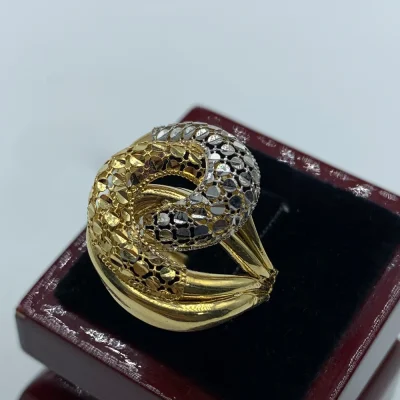 انگشتر “پیچ طلایی” با طراحی پیچیده و ترکیب هنرمندانه طلا و نقره، نمادی از ظرافت و ابدیت است. این حلقه