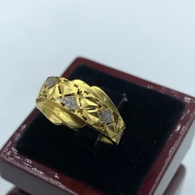 انگشتر “گل کهکشانی” با طراحی گل‌مانند و بافت توری طلایی‌اش، گویی شکوفه‌ای از ستارگان کهکشان را به دست شما آورده