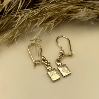 گوشواره شنل با طراحی مینیمال و لوکس، آویز مربعی طلایی با لوگوی نمادین CC را به نمایش می‌گذارد که نماد