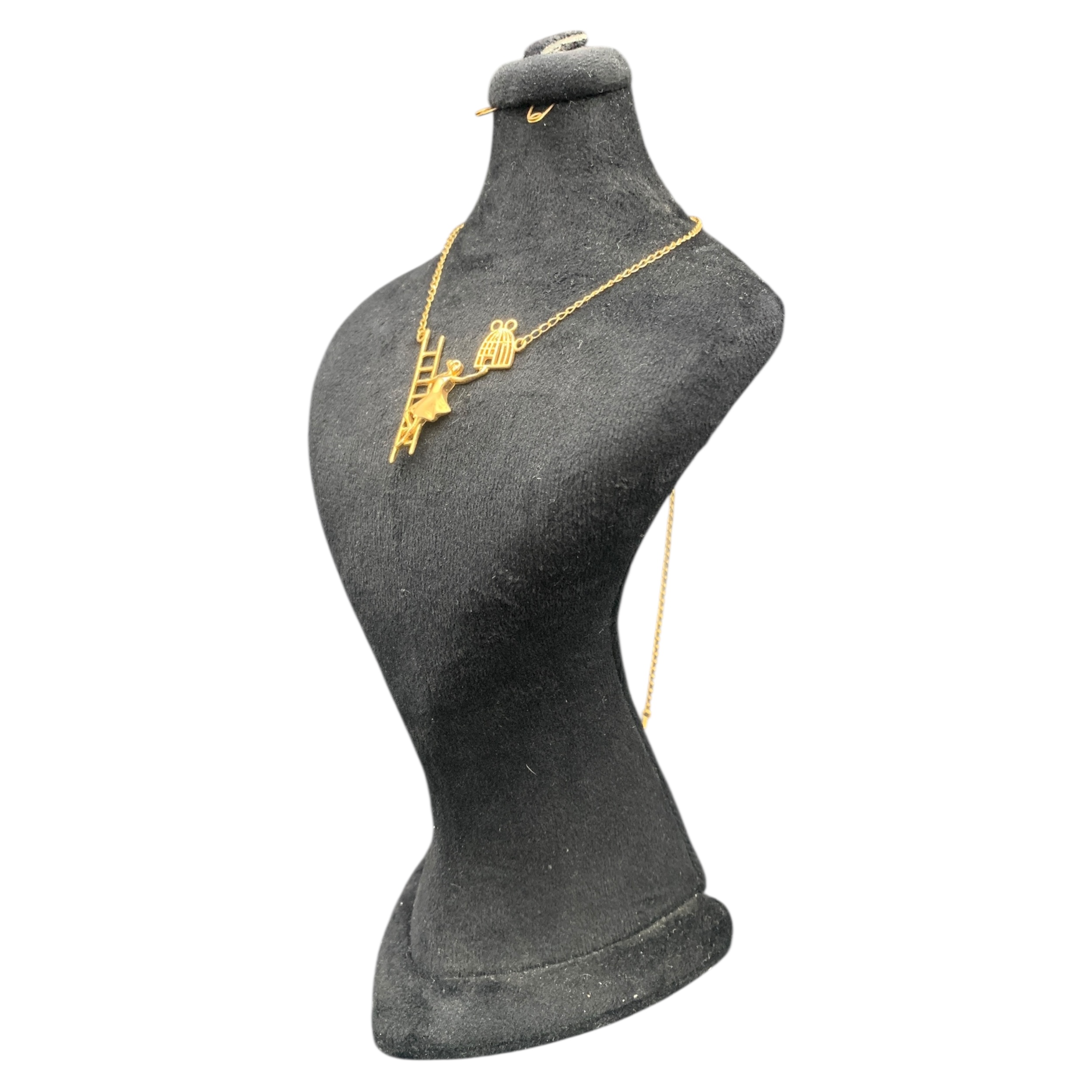 گردنبند دختر روی نردبان طلایی از برند MAHAN GOLD با طراحی فانتزی و خلاقانه، نمادی از رشد، امید و رؤیاهای طلایی است