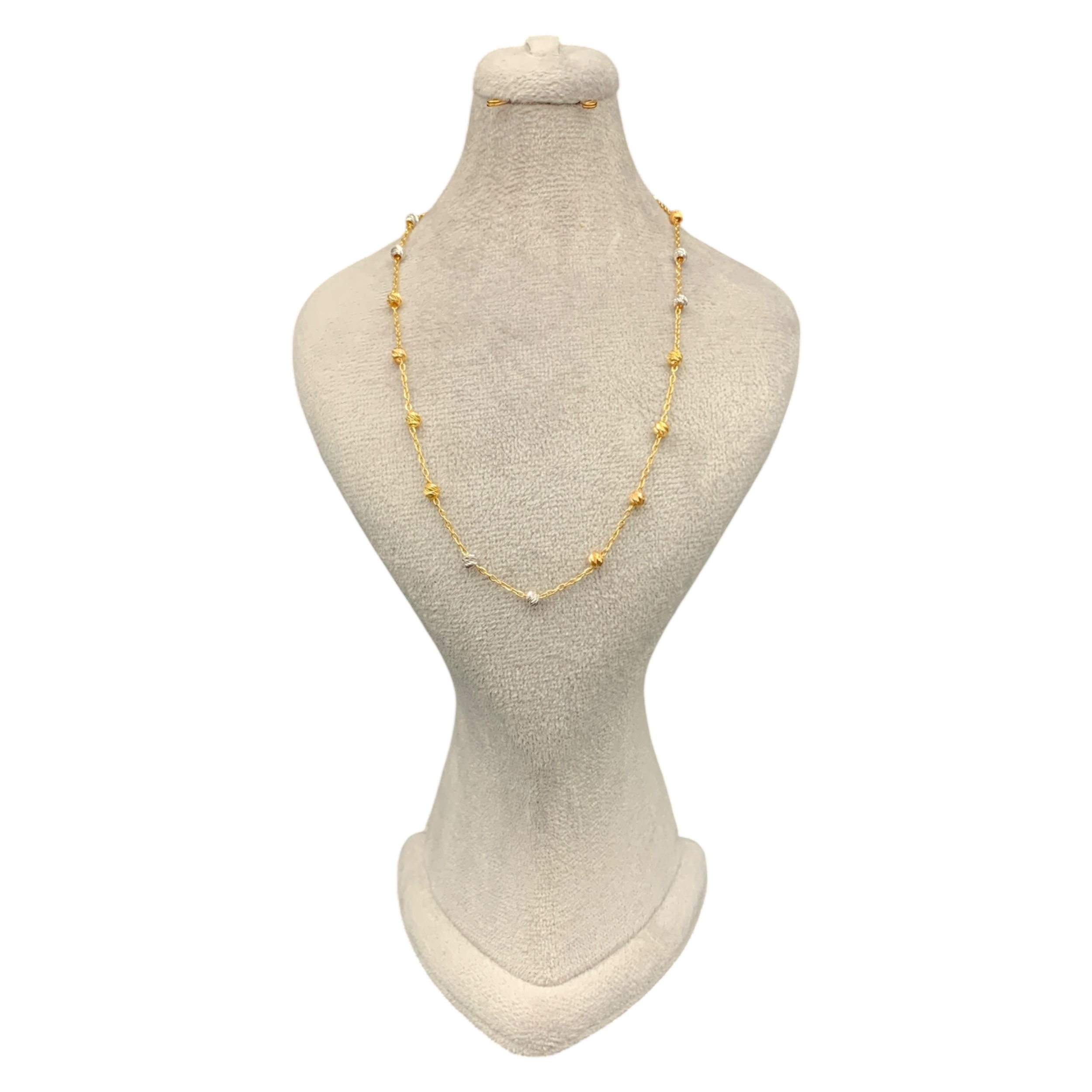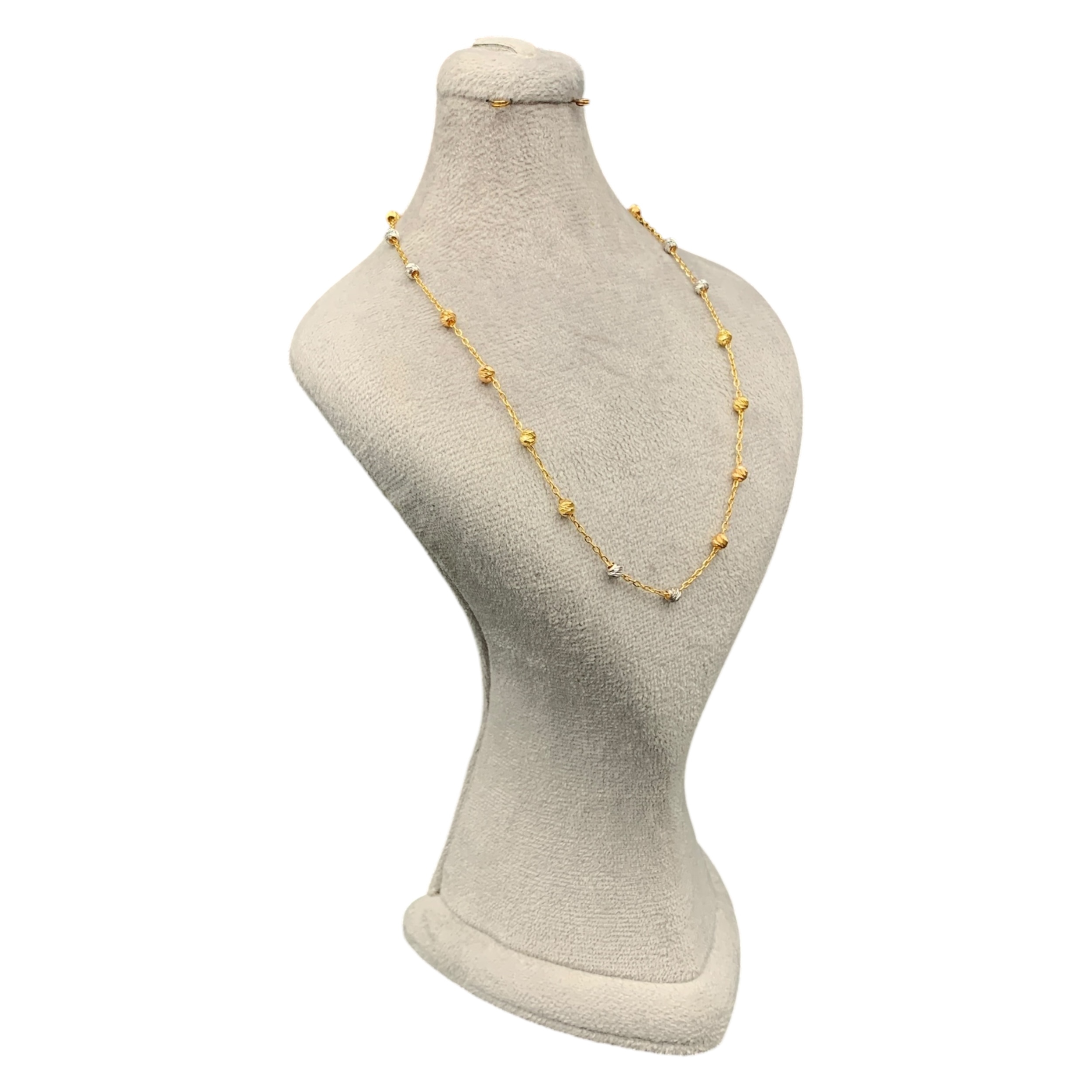 گردنبند دوریکا طلایی (Golden Dorika Beads Necklace) از مجموعه کلاسیک برند ماهان گلد (MAHAN GOLD)، طراحیای ظریف و چشمنواز دارد که با مهرههای براق دوریکا درخشان شده است.