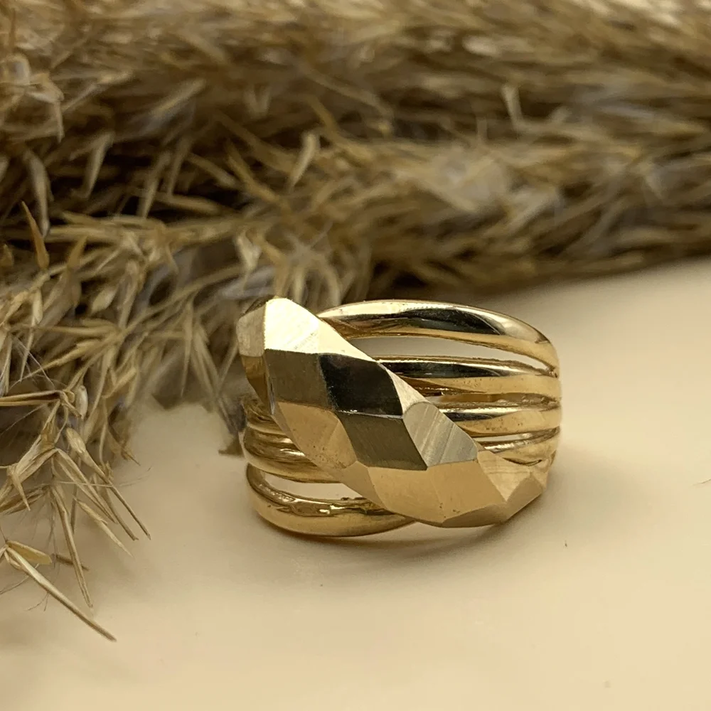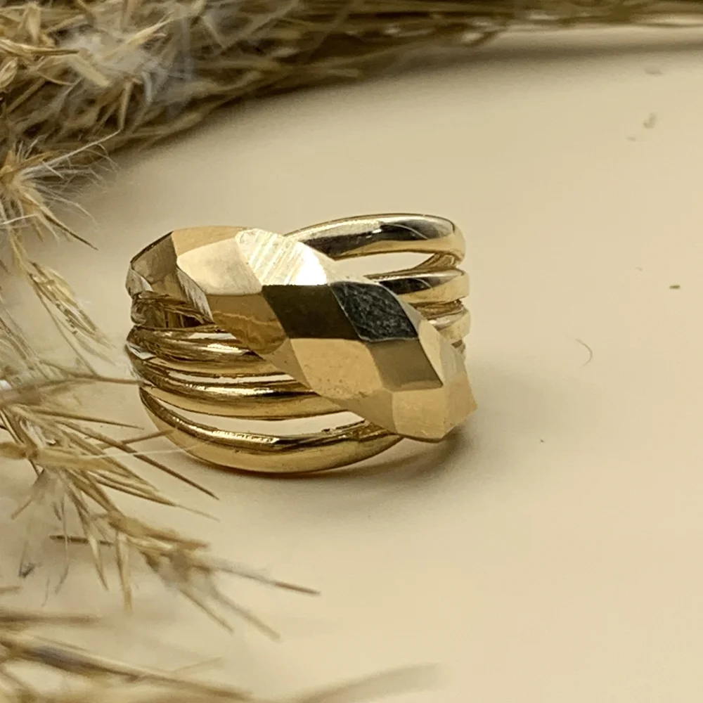 انگشتر “شفق لبه” با طراحی چندلایه و درخشش طلایی مدرناش، گویی لبهای از نور شفق را به دست شما میآورد. این جواهر با استایل تیز و پیشرو، نمادی از زیبایی امروزی و جلوهای کیهانی است که استایل شما را متمایز میکند.
