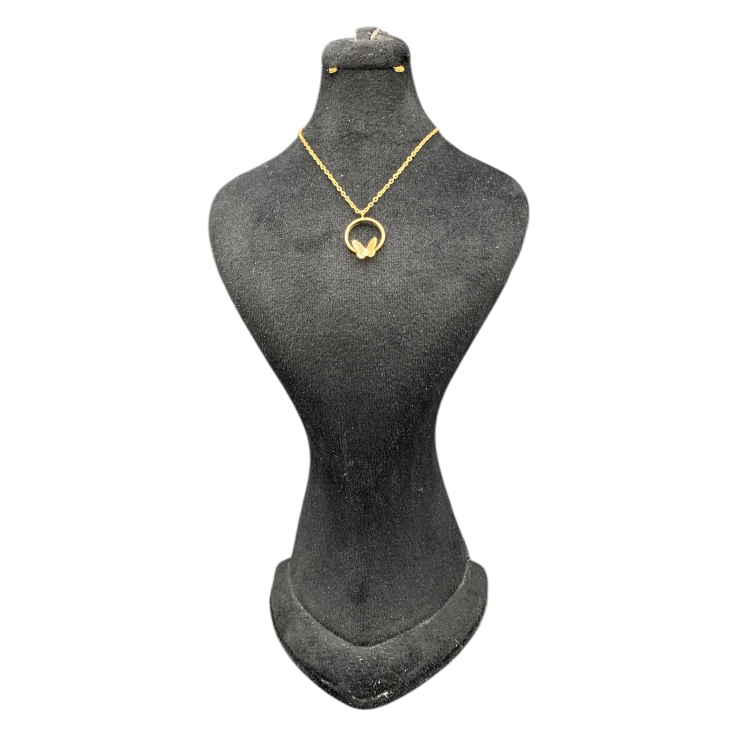 گردنبند پروانه در حلقه طلایی از برند MAHAN GOLD با طراحی ظریف پروانه درون یک حلقه نمادین، ترکیبی از لطافت، آزادی و درخشش زنانه را به نمایش میگذارد