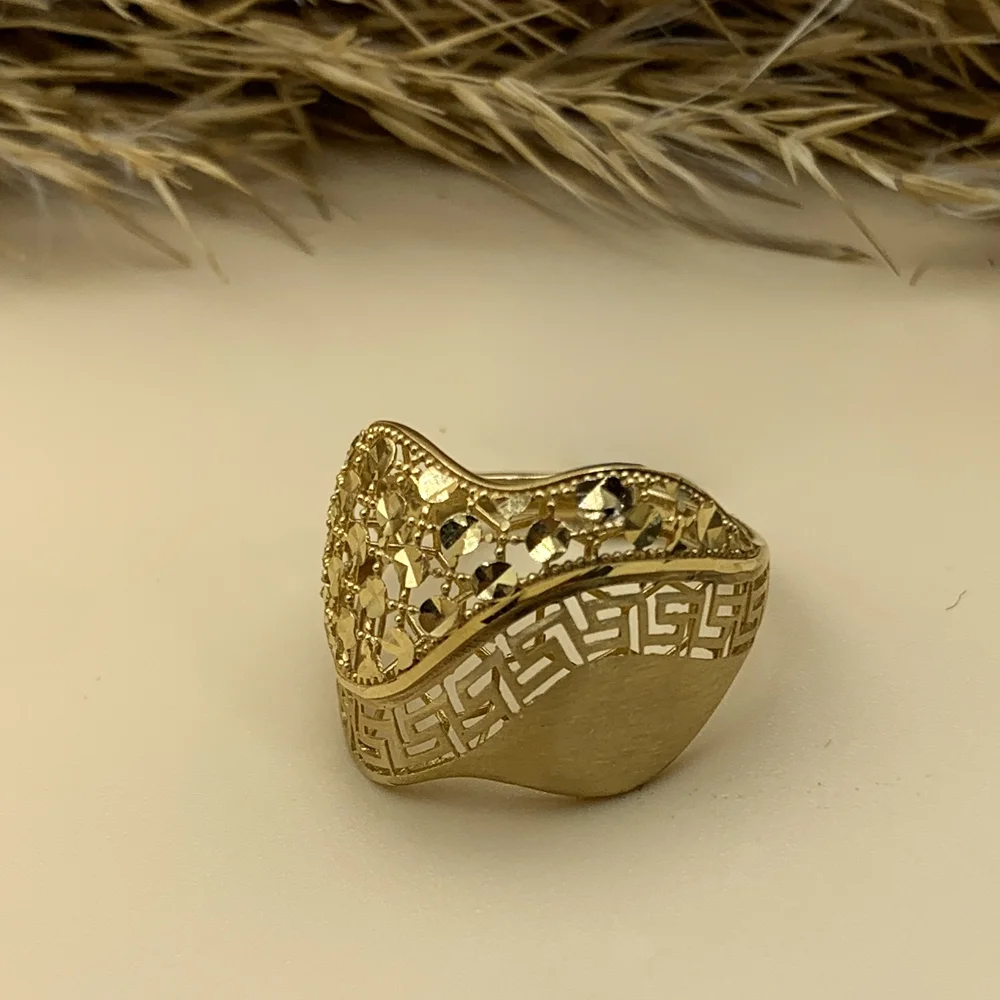 انگشتر “طلای اژدها” با طراحی مواج و بافت توریمانند طلاییاش، گویی قدرت و شکوه یک اژدهای اساطیری را در خود جای داده است. این جواهر با درخشش خیرهکنندهاش، نمادی از نیروی بیانتها و جلوهای سلطنتی به دست شما میبخشد.