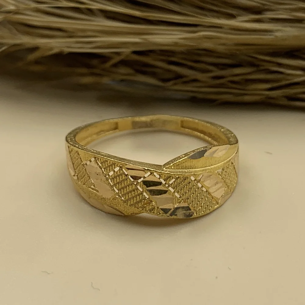 انگشتر “پارچهای” (یا Quilted) نامی خلاقانه است که این جواهر را از قطعات فلزی ساده متمایز میکند و به آن حسی از نرمی و بافت میبخشد.این طرح با الهام از بافتهای ظریف و گرانبهای منسوجات، به ویژه الگوهای لوزی و شبکهای (مانند طرحهای شطرنجی یا لحافدوزی)، بافتی بینظیر روی طلا ایجاد کرده است.