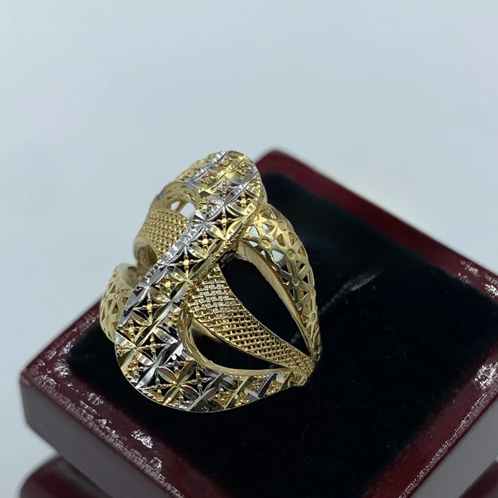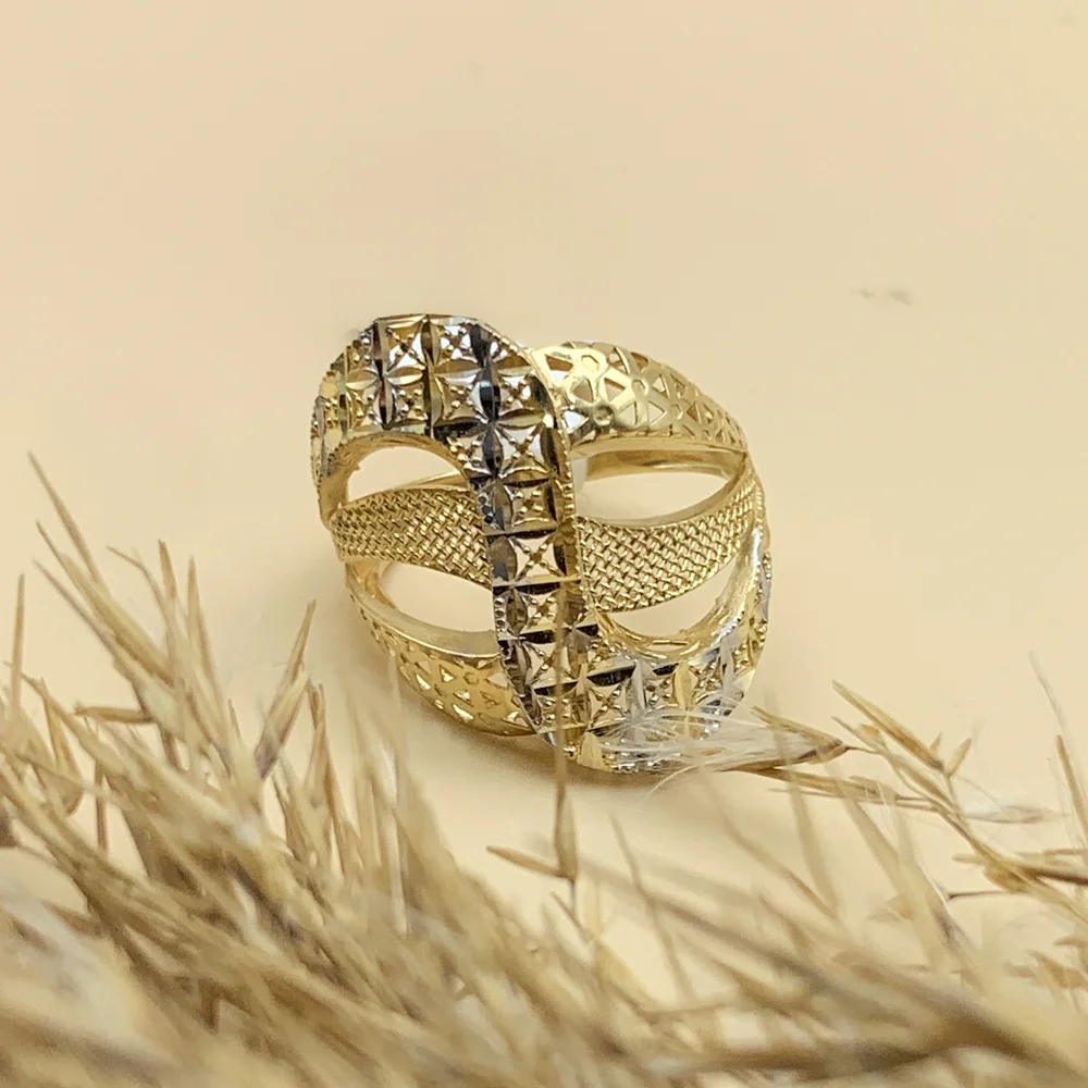 انگشتر “رقص طلایی” با طراحی پویا و ترکیبی از طلا و نقره، گویی حرکتی هنرمندانه را به نمایش میگذارد. این حلقه با بافتهای ظریف و درخشش بینظیرش، مناسب برای افزودن جلوهای خاص به استایل شما در هر لحظه است.