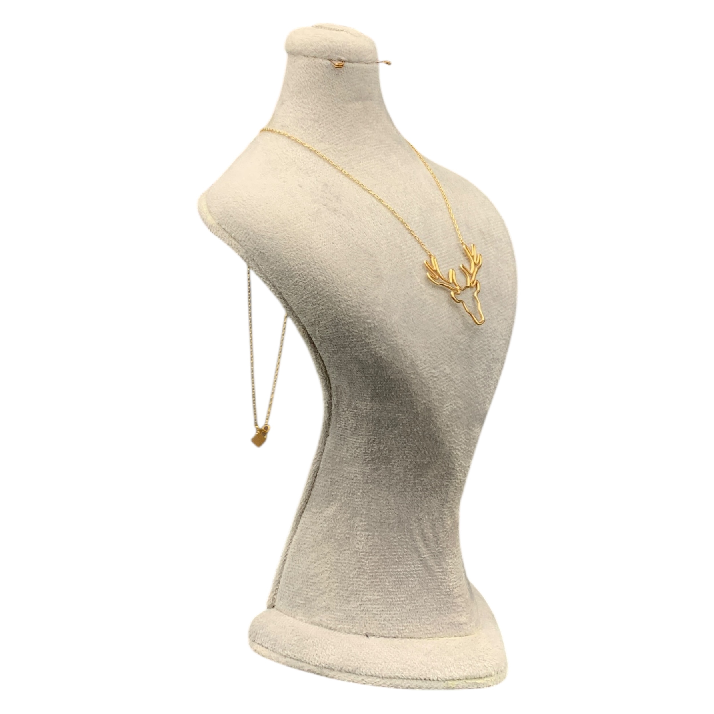 گردنبند گوزن طلایی با طراحی مدرن و نمادین سر گوزن، ترکیبی از قدرت و ظرافت برای استایلهای خاص و متفاوت.