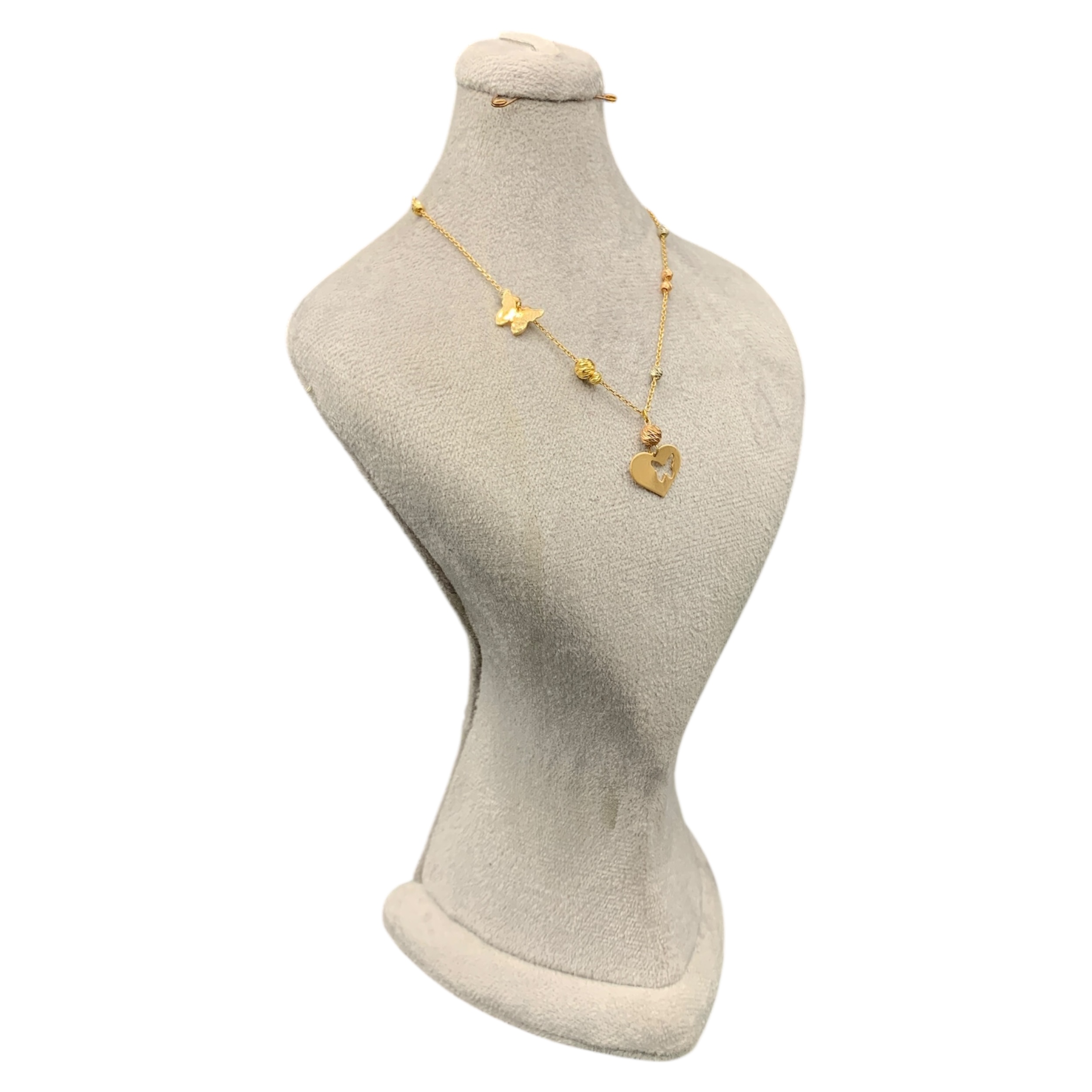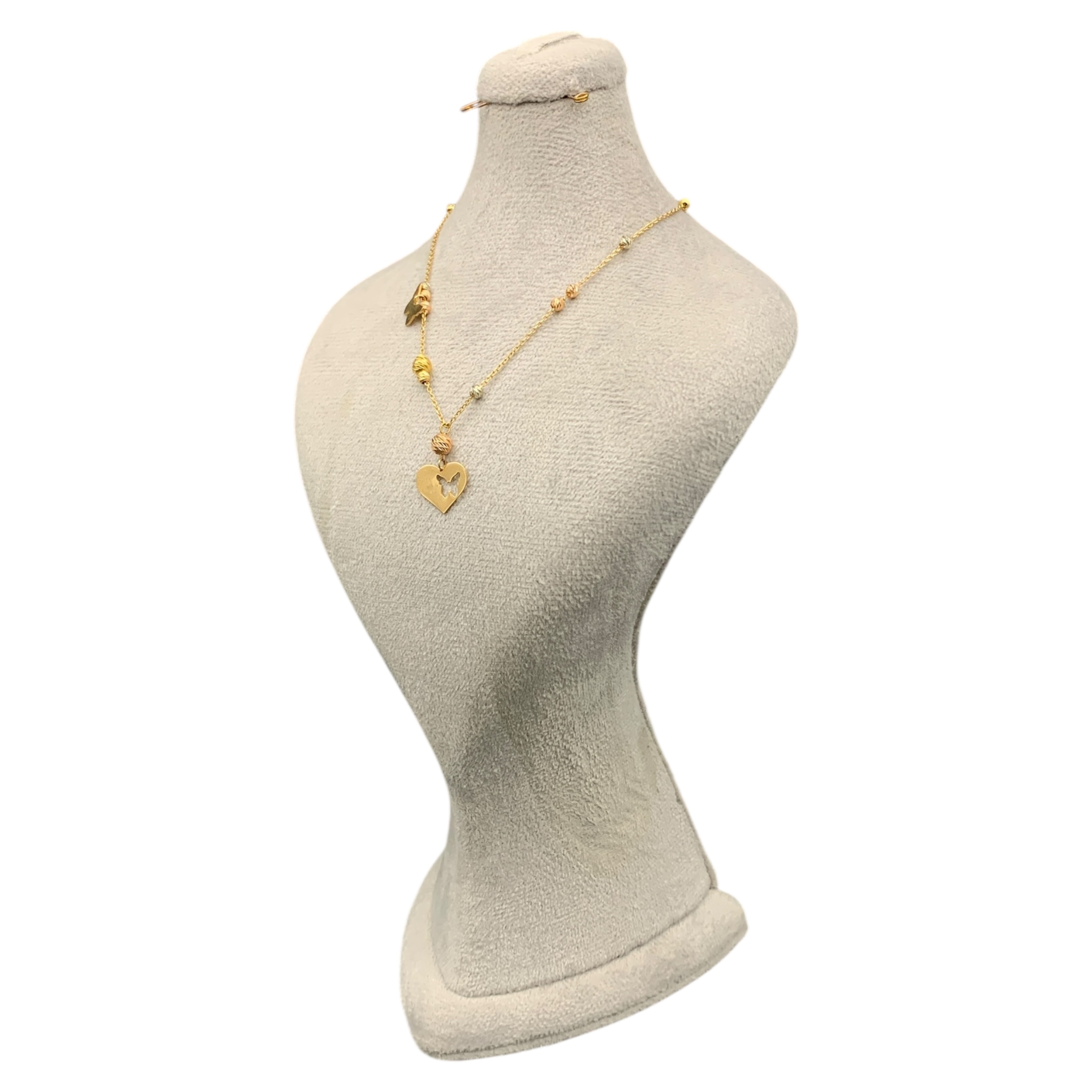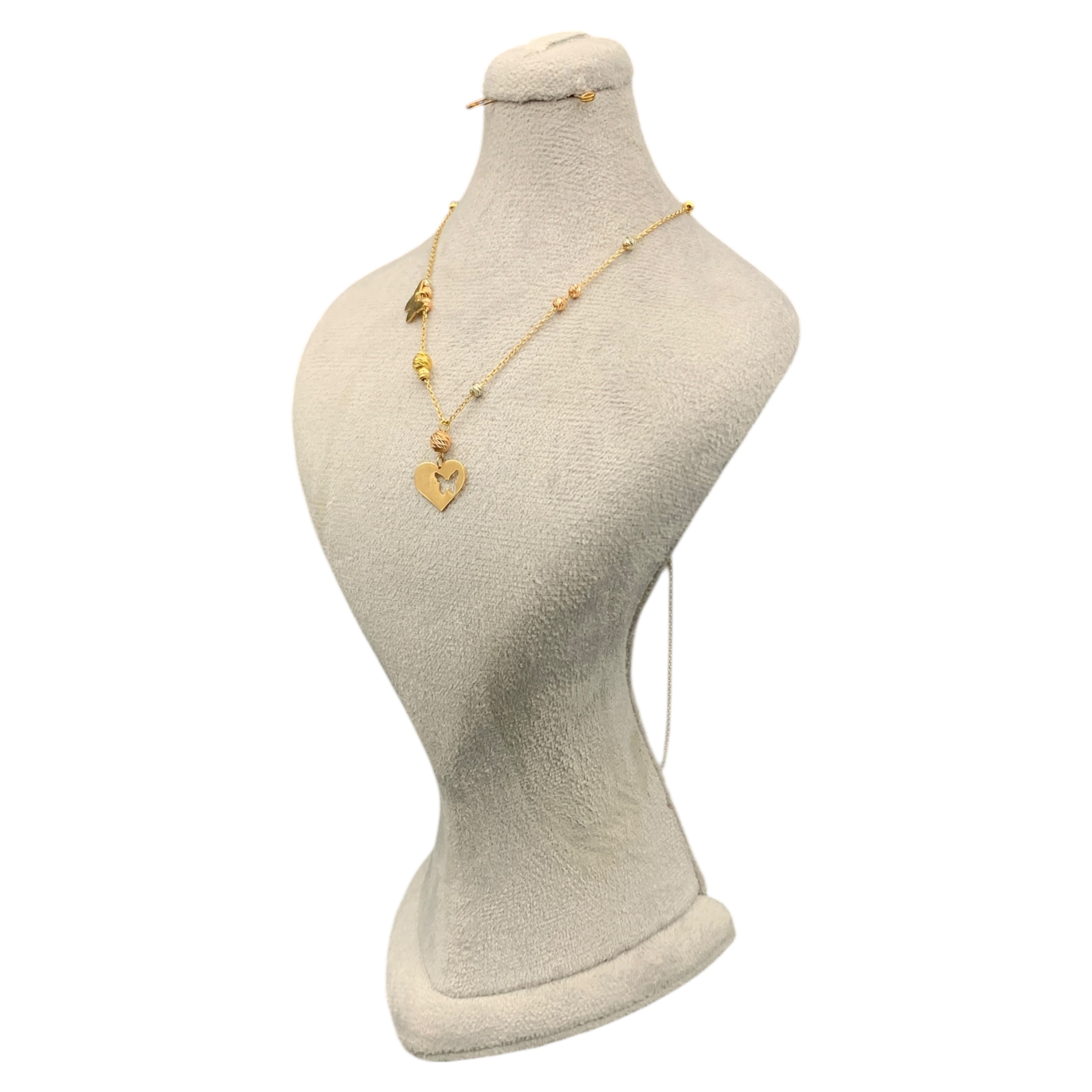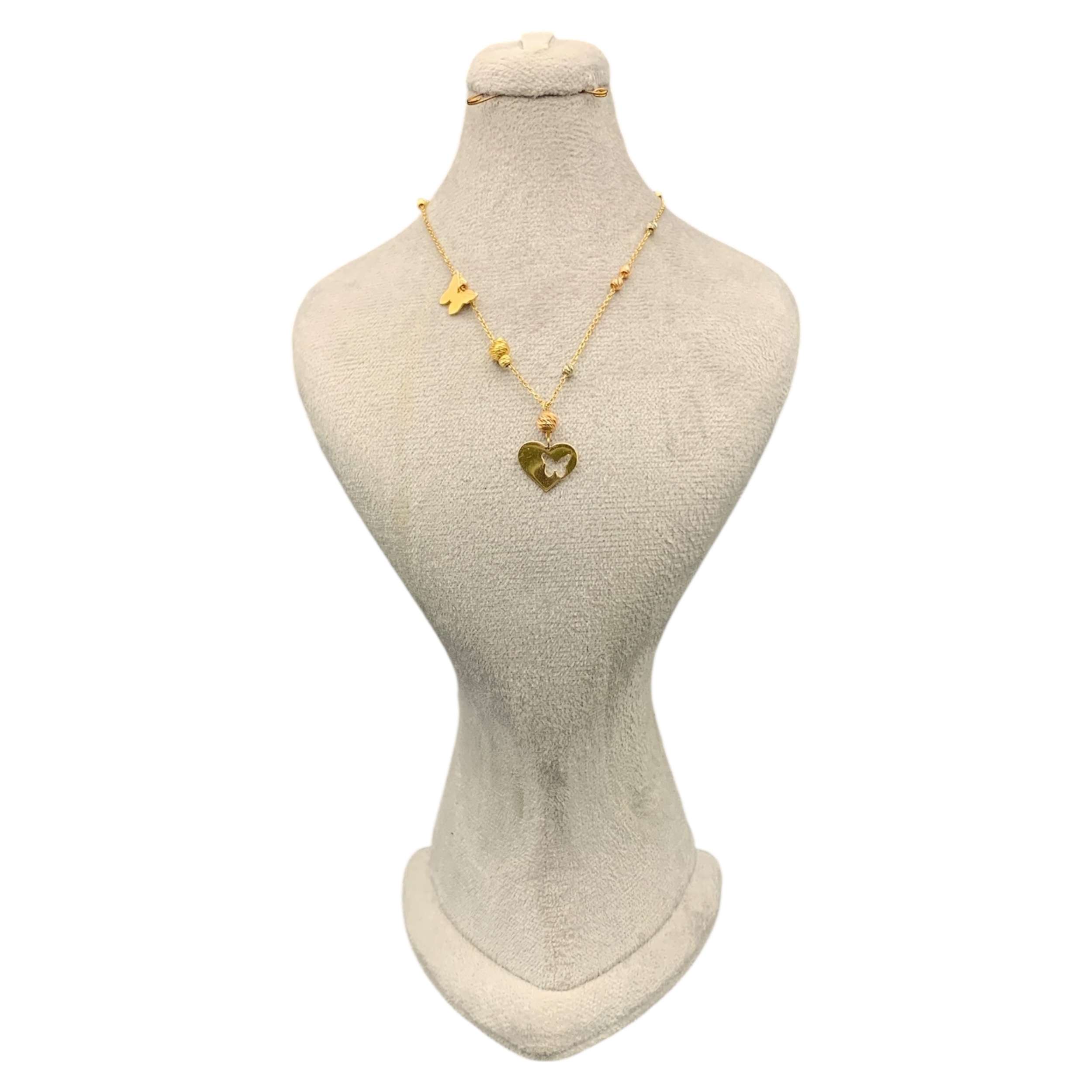 گردنبند دوریکا قلب طلایی ترکیبی از ظرافت مهرههای دوریکا و عشق قلبیشکل، مناسب برای استایلهای روزمره و هدیههای خاص.