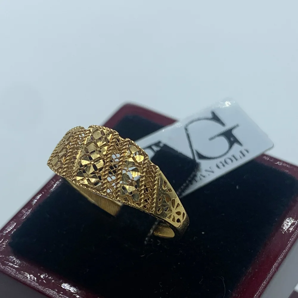 انگشتر “شعله طلایی” با بافت درخشان و طراحی منحصربهفردش، گویی آتشی از طلا را در خود جای داده است. این جواهر نه تنها نمادی از گرما و قدرت است، بلکه با هر نوری که به آن میتابد، جلوهای اسرارآمیز و جذاب ایجاد میکند که نگاهها را به خود خیره میکند.