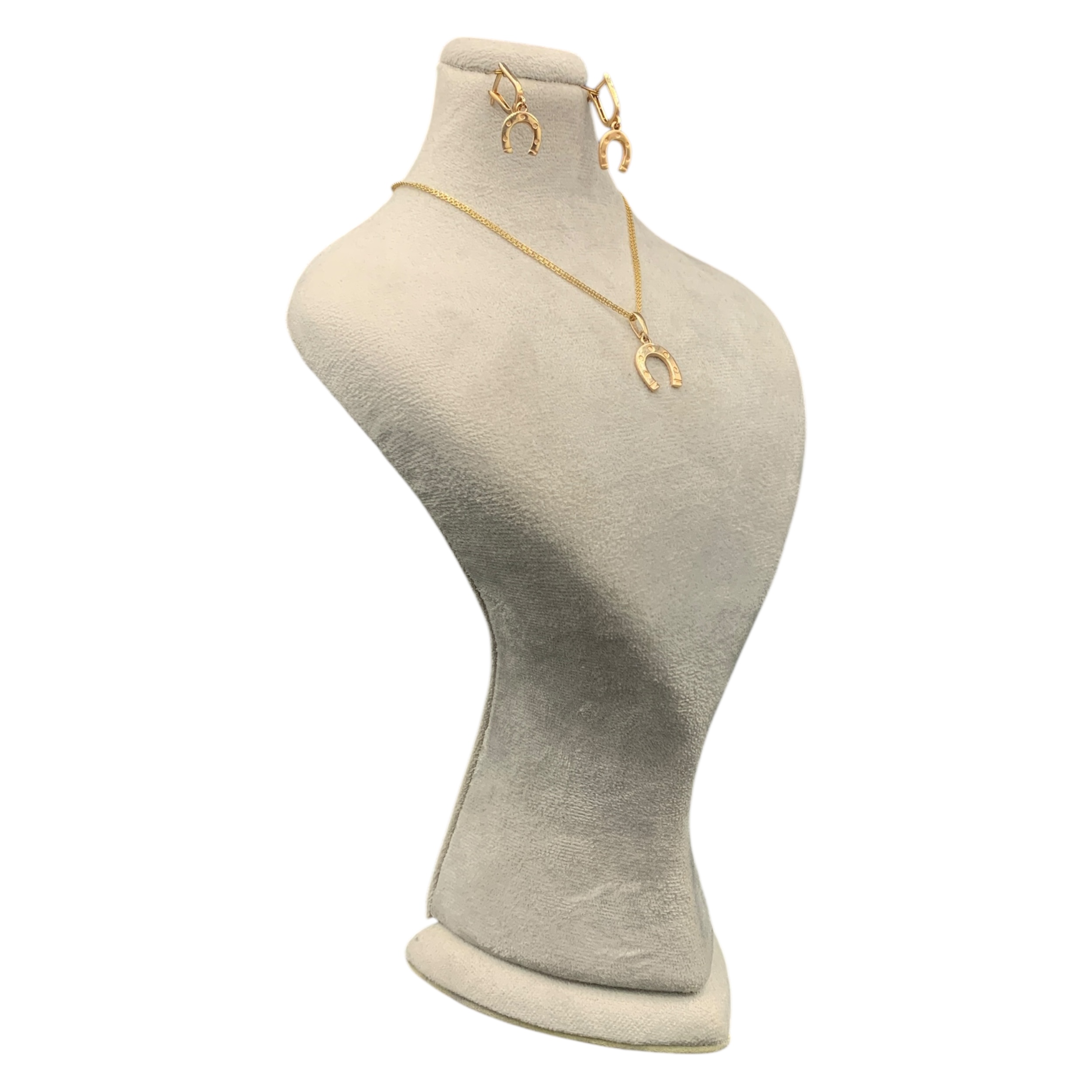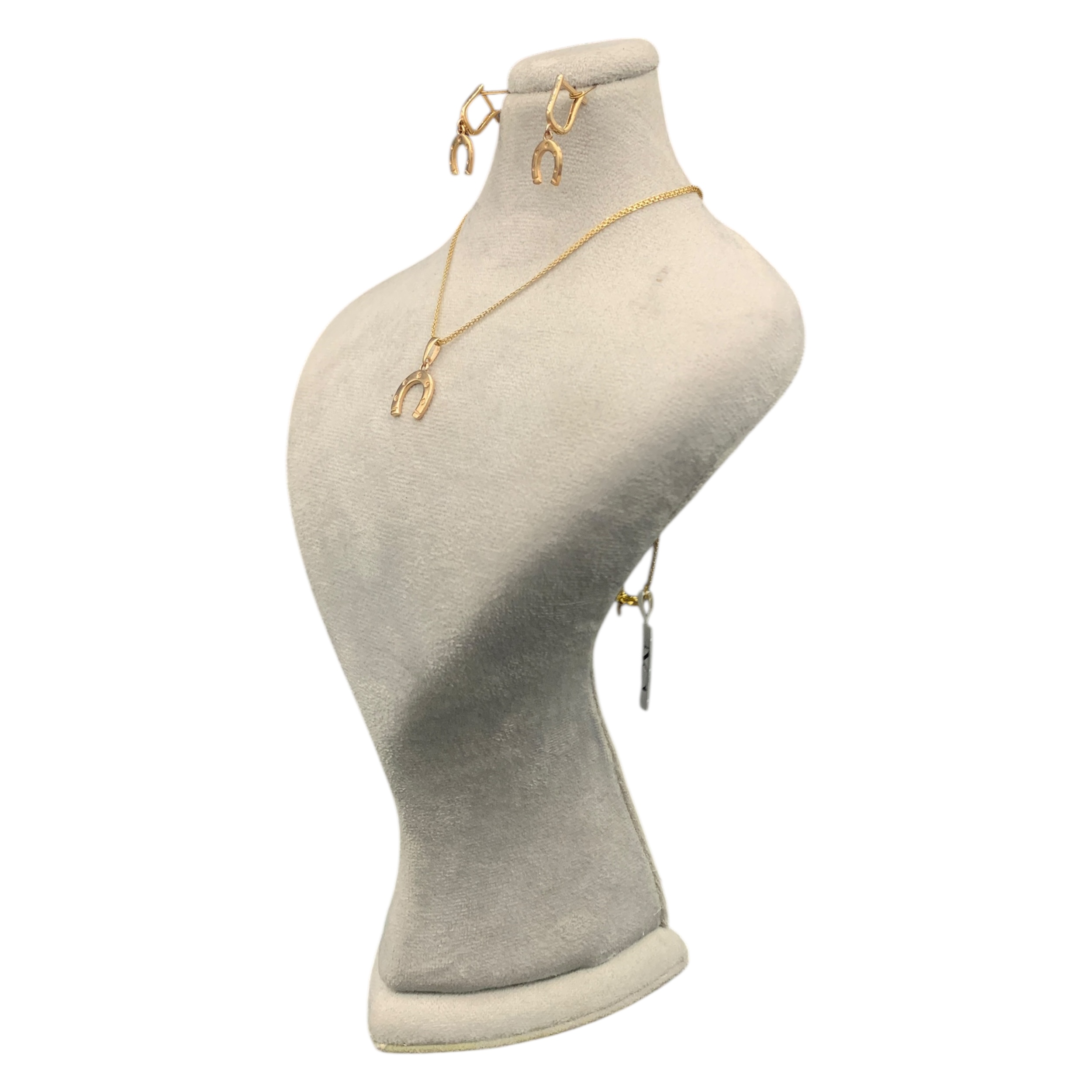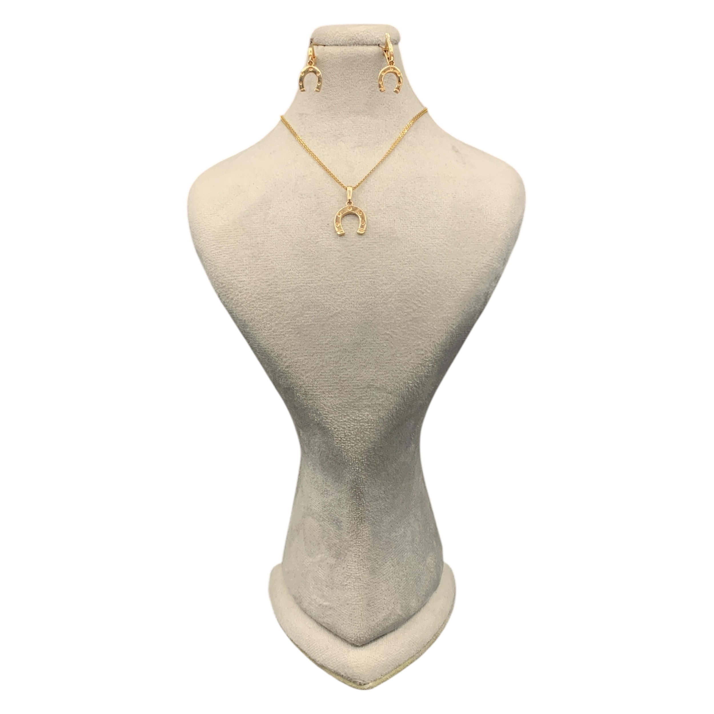 نیمست طلایی طرح نعل اسب شامل گردنبند و گوشوارههای لوکس با نماد خوششانسی و طراحی ظریف براق برای استایلهای خاص بانوان