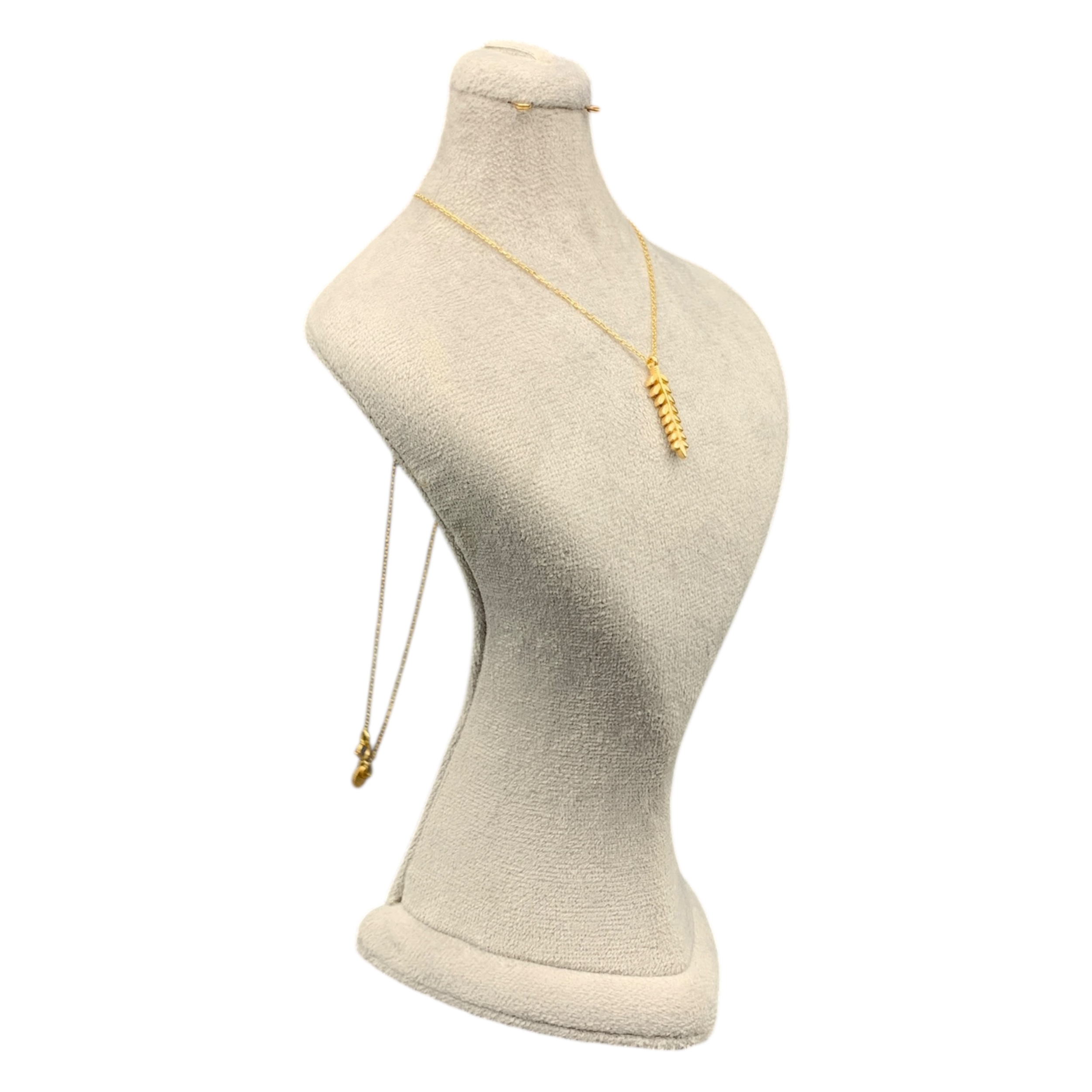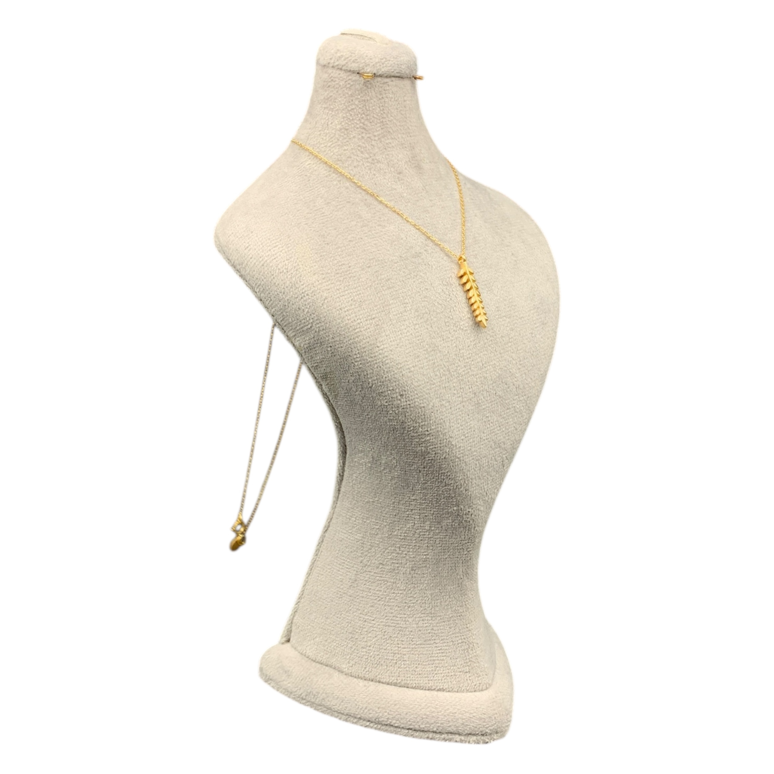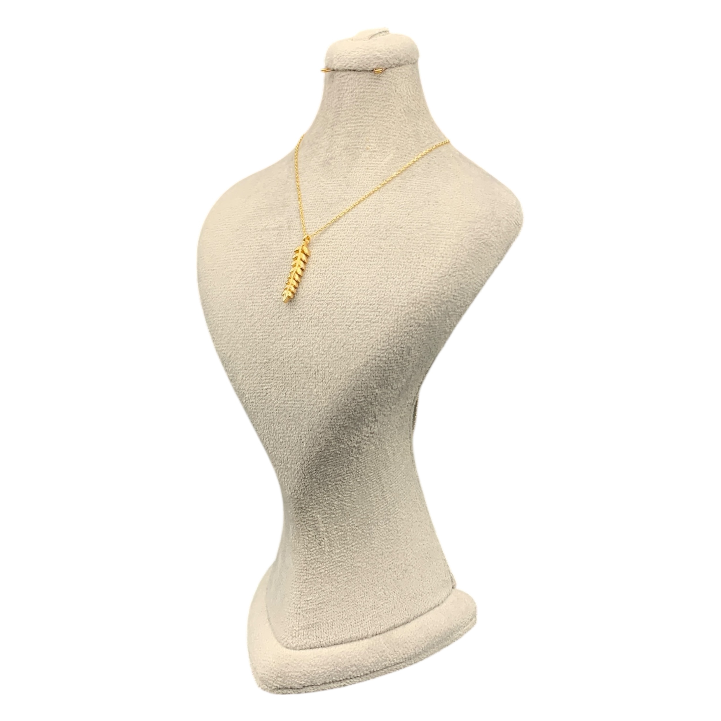 این زیور با سطح صیقلی و جزئیات دقیق طراحی برگ، به صورت ظریف روی گردن قرار میگیرد و برای استفاده روزانه یا هدیه انتخابی ایدهآل است.