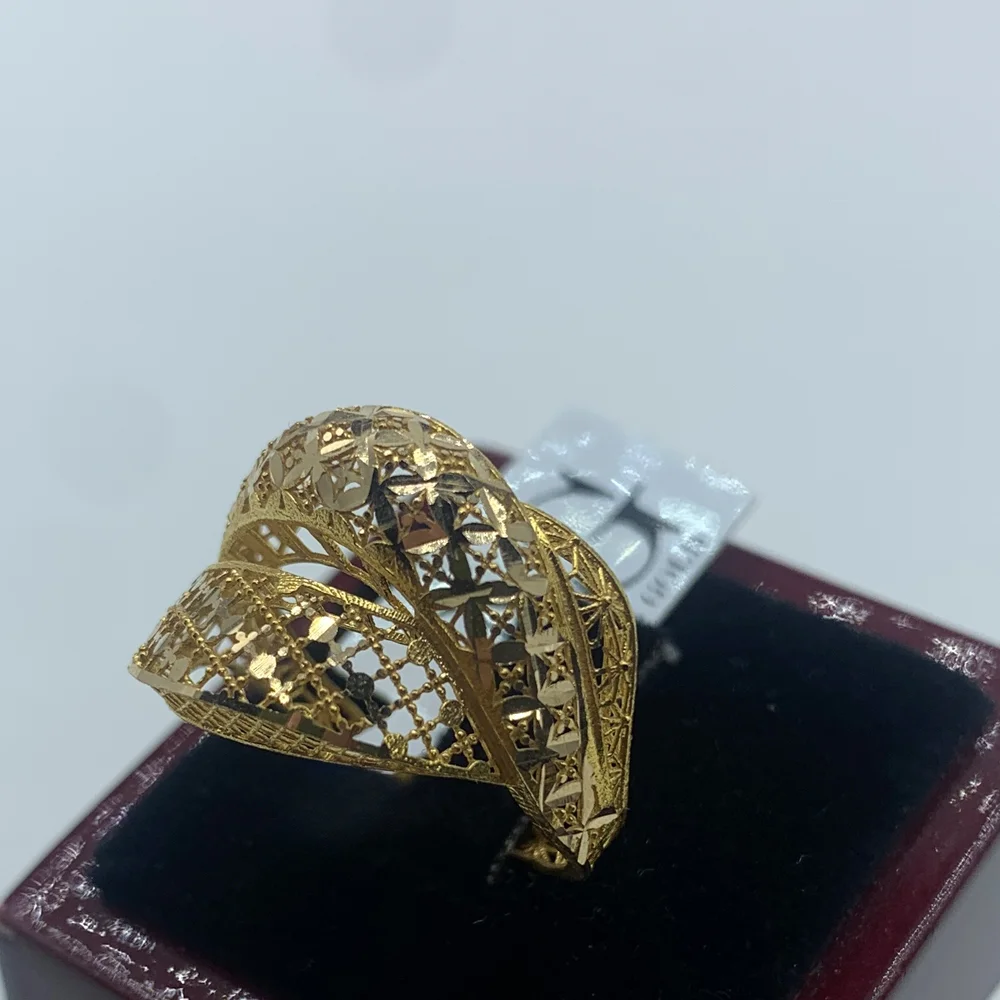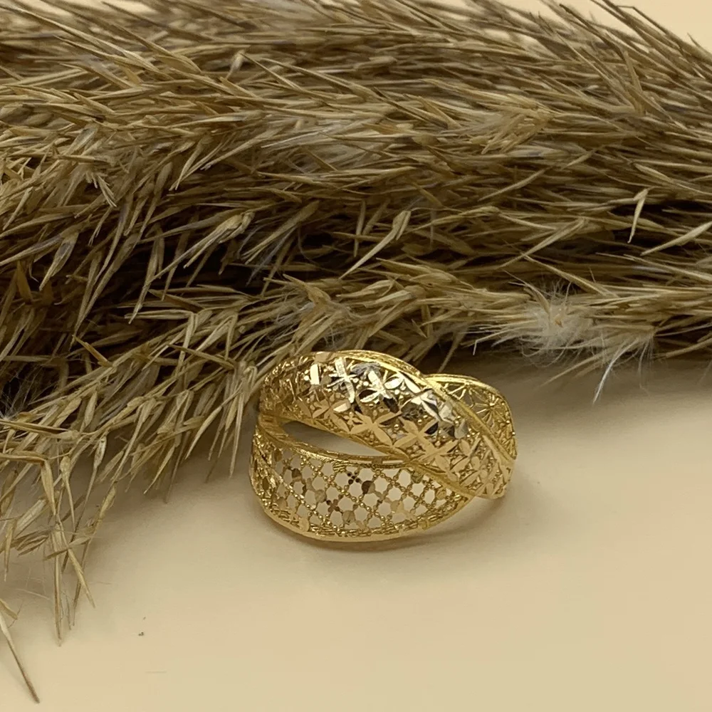انگشتر ستارههای زرین، با طراحی توری ظریف و نقشهای ستارهمانند طلایی، نمادی از زیبایی آسمانی است. این حلقه با درخشش گرم و الگوهای دقیقش، جلوهای فاخر و رویاهنگ به دست میبخشد و برای هر مناسبتی، از روزمره تا مراسم خاص، انتخابی بینظیر است.