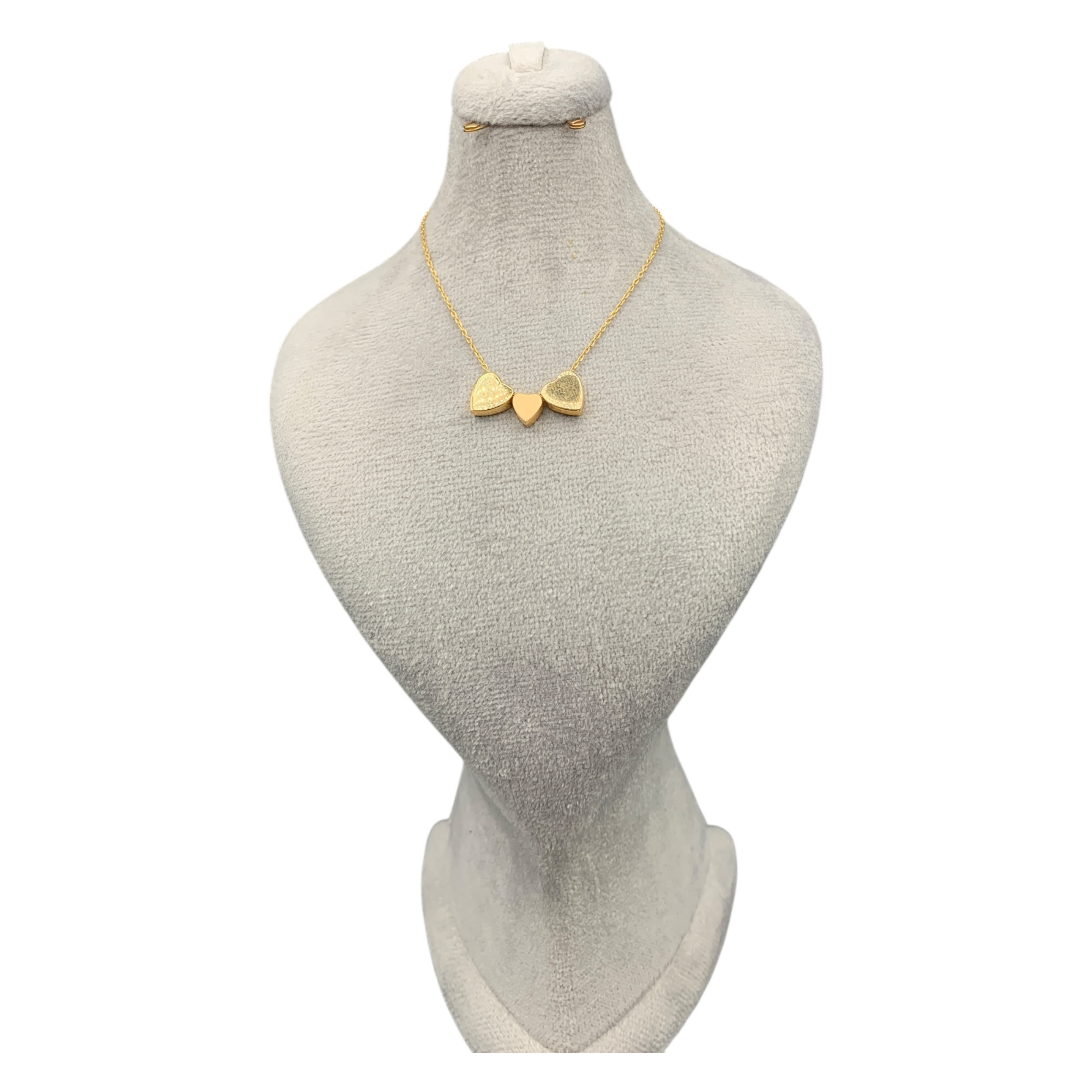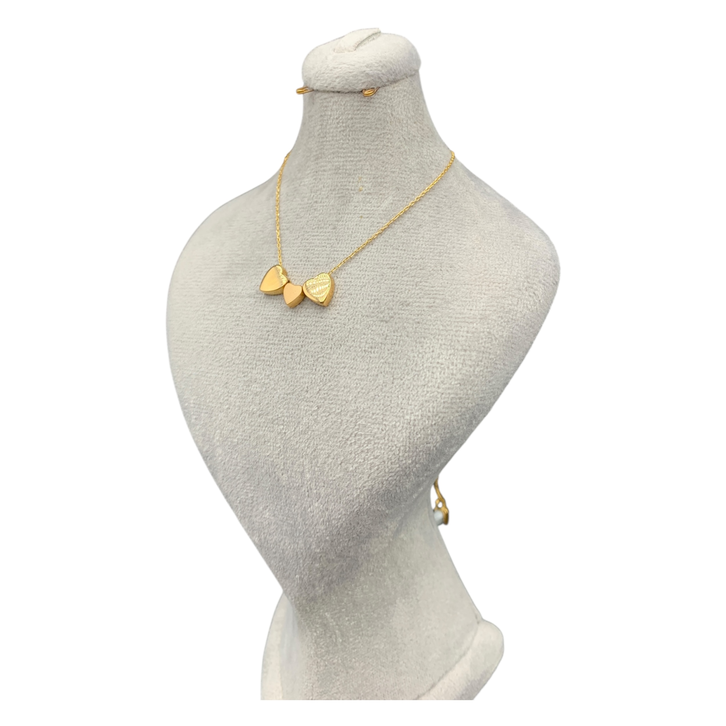 گردنبند سه قلب طلایی با طراحی عاشقانه و مینیمال، نمادی از عشق، وحدت و زیبایی جاودانه است.