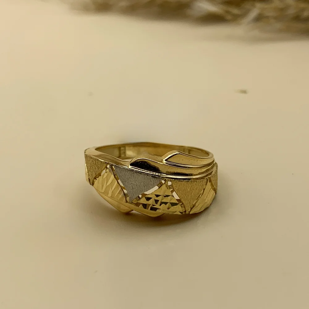 انگشتر “خورشین” با طراحی طلایی و برشهای هندسی، نمادی از درخشش و اوج شکوهه. این حلقه با بافت برجسته و مدرناش، جلوهای قدرتمند و امروزی به دست میده و برای هر استایل خاص، انتخابی بیهمتاست.
