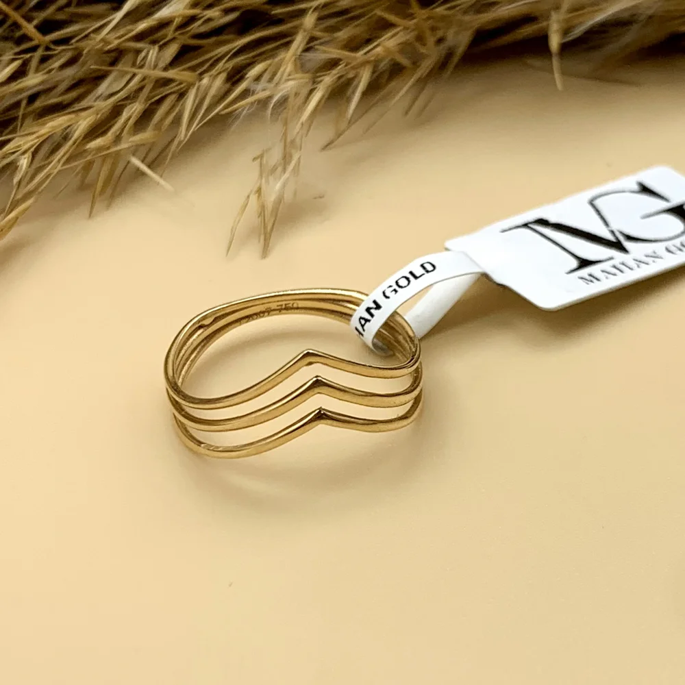 انگشتر مینیمال حلقه هارمونی، با طراحی ظریف و سه حلقه مواج طلایی، نمادی از تعادل و هماهنگی است. این جواهر با خطوط نرم و براقش، جلوهای مدرن و آرامشبخش به دست میبخشد و برای هر مناسبتی، از روزمره تا لحظات خاص، انتخابی شیک و معنادار است.