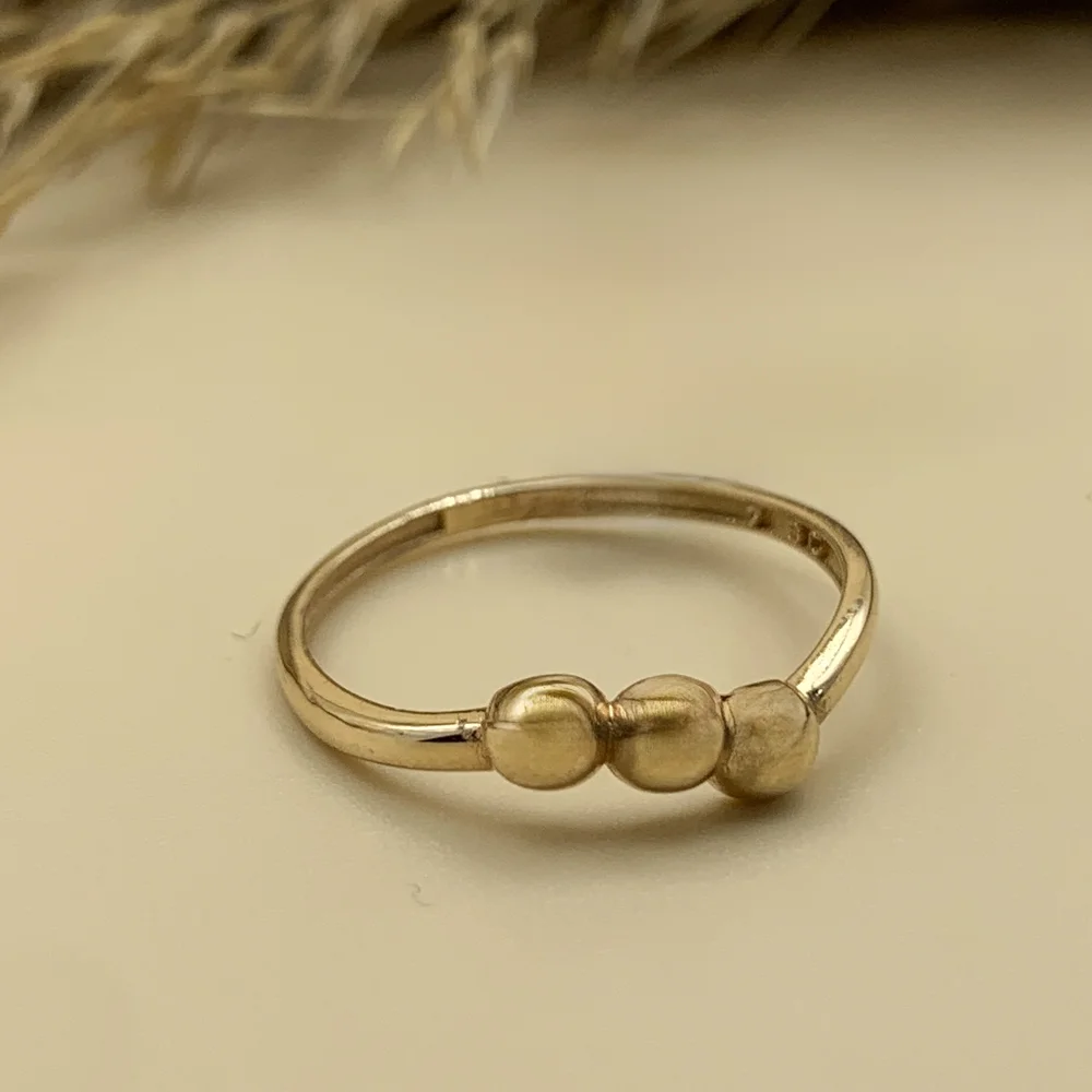 انگشتر مینیمال “نور سه گانه” با طراحی ظریف و سه نگین گرد طلایی، نمادی از درخشش و هماهنگی است. این حلقه ساده اما شیک، با رنگ گرم طلایش، حس روشنایی و تعادل را به همراه دارد و برای هر لحظهای که به دنبال elegance طبیعی هستید، انتخابی بینظیر است.