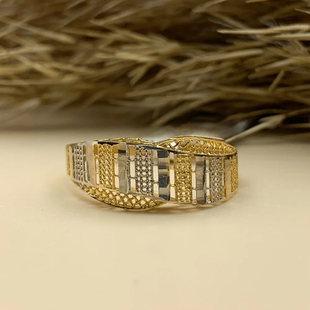 انگشتر “موزاییک” یک شاهکار هندسی است که با الهام از هنر کهن موزاییککاری طراحی شده است. این انگشتر پهن با استفاده از بلوکها و نوارهای عمودی کوچک که در کنار هم قرار گرفتهاند، یک بافت بصری منظم و چشمگیر ایجاد میکند.