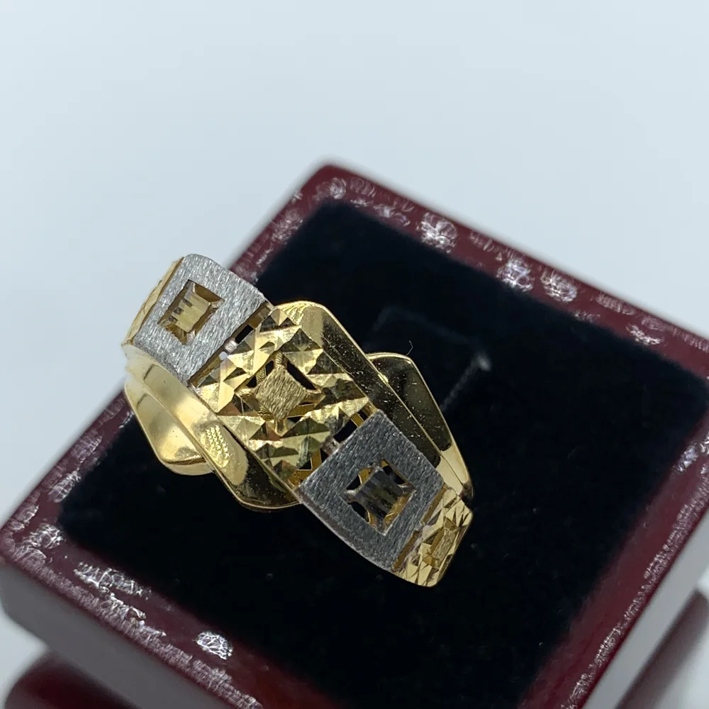 انگشتر “نقشاورا” با طراحی طلایی و هندسی خاصش، نمادی از هاله درخشش و مدرنیتهست. این حلقه با بافت چندلایه و ظریفش، جلوهای شیک و نو به دست میده و برای هر استایل امروزی، انتخابی بینظیره.