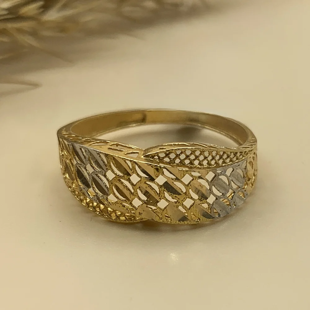 انگشتر “نوربار” با طراحی توریمانند و ترکیب طلایی و نقرهای، گویی پرتوهای نوری را در خود جای داده است. این حلقه با بافت ظریف و درخشش بینظیرش، انتخابی شیک برای افزودن جلوهای درخشان به استایل شماست.