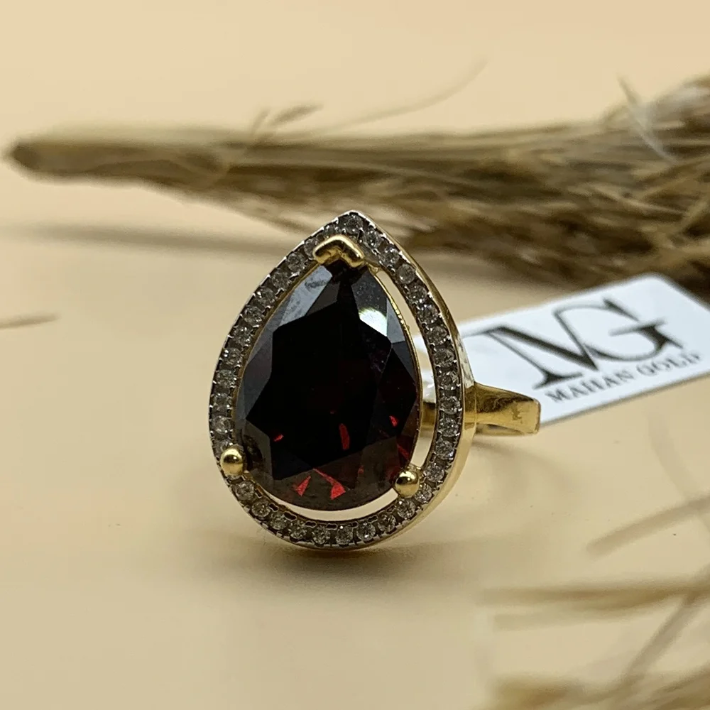انگشتر “نقطه سرخ” با سنگ بزرگ و رنگ عمیقش، نمادی از elegance و قدرت است. این حلقه با فریم طلایی و نگینهای درخشان، رنگ سرخ درون سنگ را برجسته میکند و ظاهری مجلل ایجاد میکند. مناسب برای شبهای خاص، این انگشتر استایل شما را تکمیل میکند.