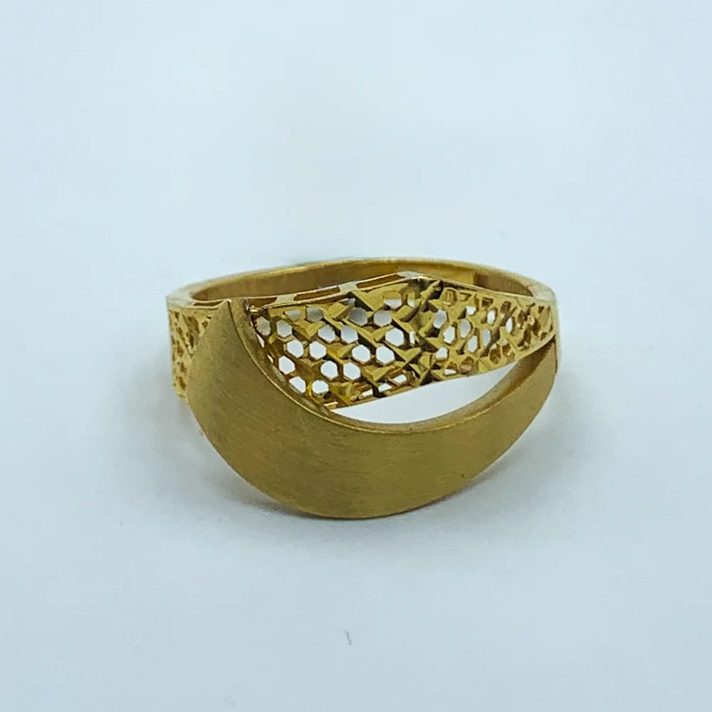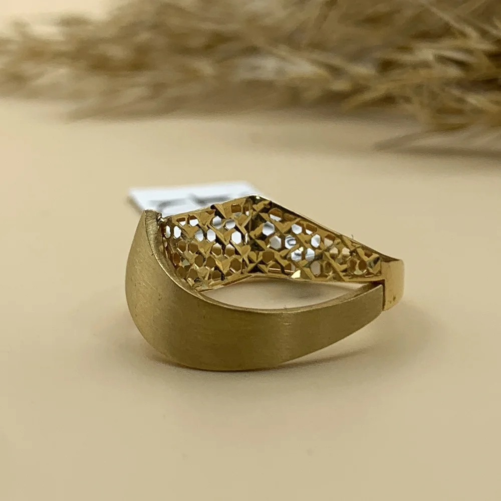 «حریر»، نامی که نرمی و ظرافت بینظیر پارچهای گرانبها را به ذهن میآورد. این انگشتر، با طراحی هوشمندانهاش، تضاد دلنشینی از دو بافت مختلف را در کنار هم به نمایش میگذارد.یک طرف آن، نوار طلای صاف و محکم که مانند یک شوالیه از درخشش خود محافظت میکند، و طرف دیگر، بافت مشبک و لانهزنبوری که چون پارچهی حریر با دقت بافته شده، نور را به نرمی از خود عبور میدهد.
