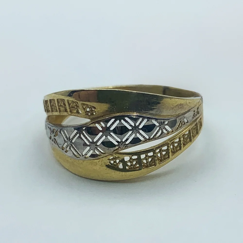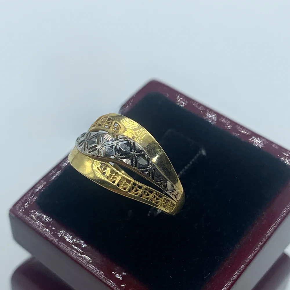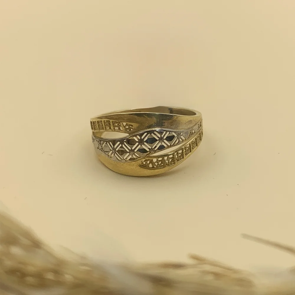 انگشتر “پیوند ستارهای” با طراحی مواج و ترکیب طلایی و نقرهای، گویی درخشش ستارگان را به هم متصل میکند. این حلقه با بافتهای ظریف و هارمونی رنگها، انتخابی بینظیر برای افزودن جادویی آسمانی به استایل شماست.