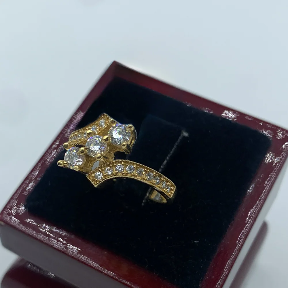 انگشتر سهنگار با سه نگین درخشان و بدنه طلایی ظریف، نمادی از زیبایی چندجانبه و elegance مدرن است. این انگشتر با طراحی منحصربهفردش، انتخابی شیک برای افزودن درخشش به استایل روزمره یا مراسم ویژه است.